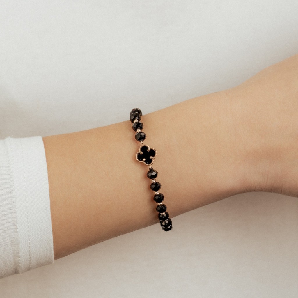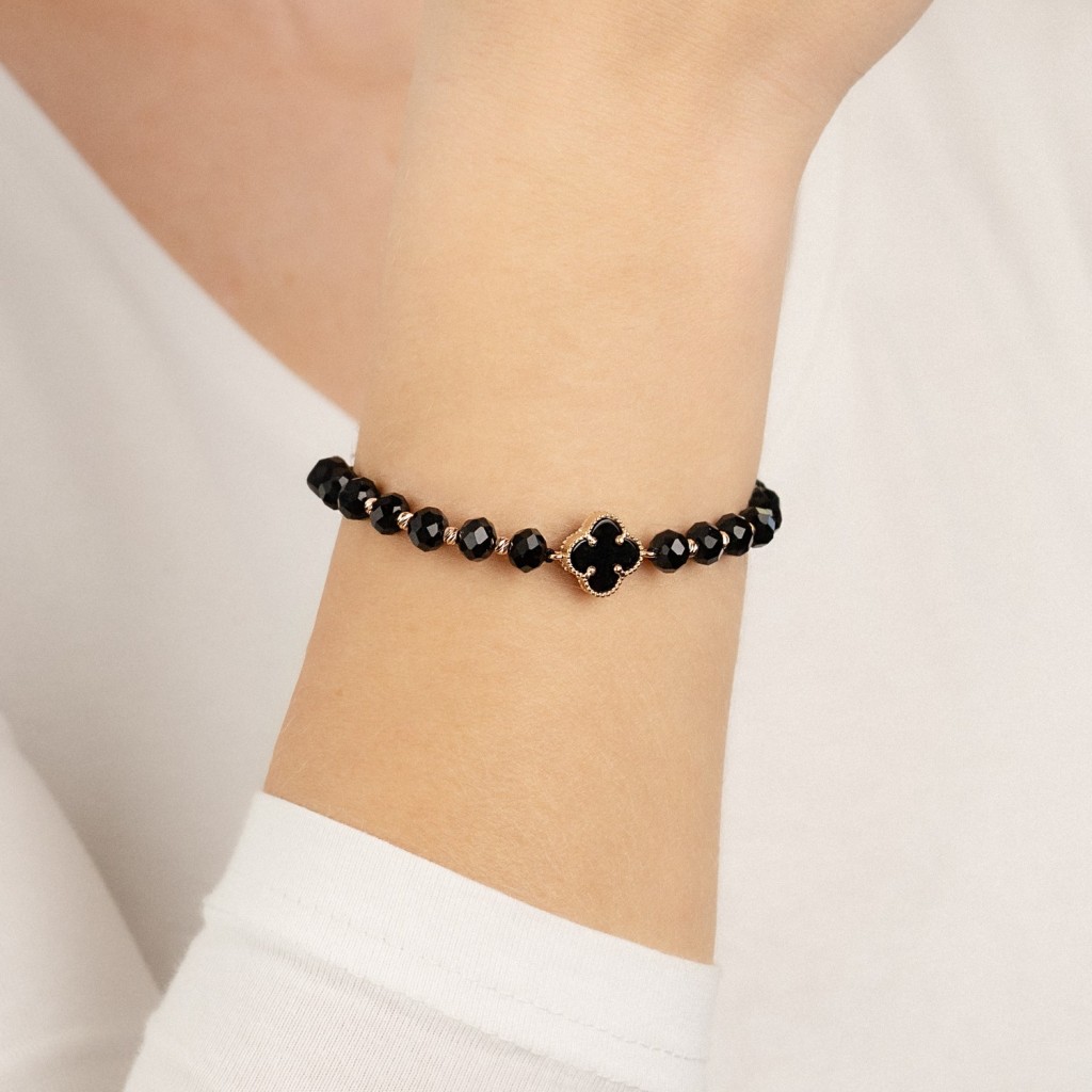 Black string bracelet with gold and onyxes