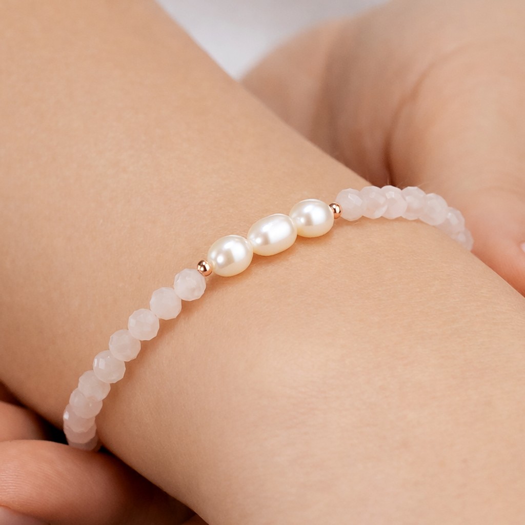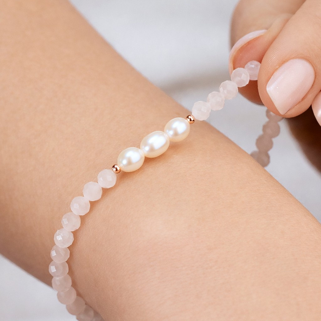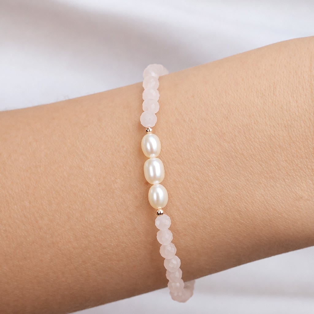 Bracelet with rose quartz and gold-plated silver