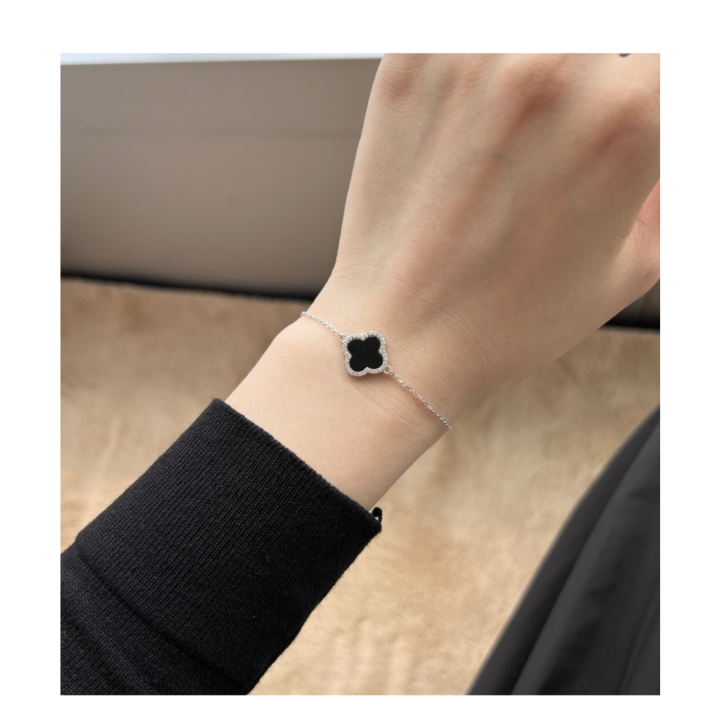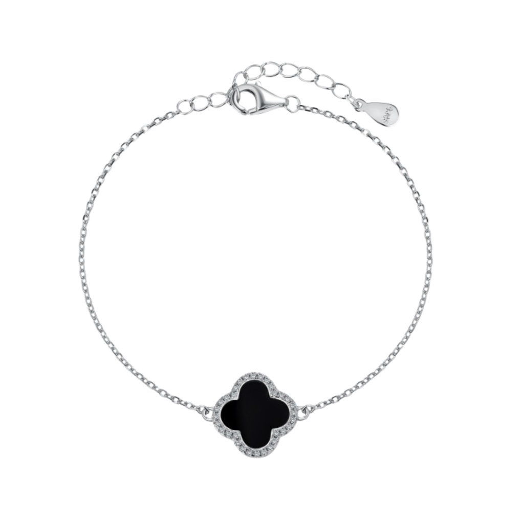 Silver bracelet with onyx and zircons