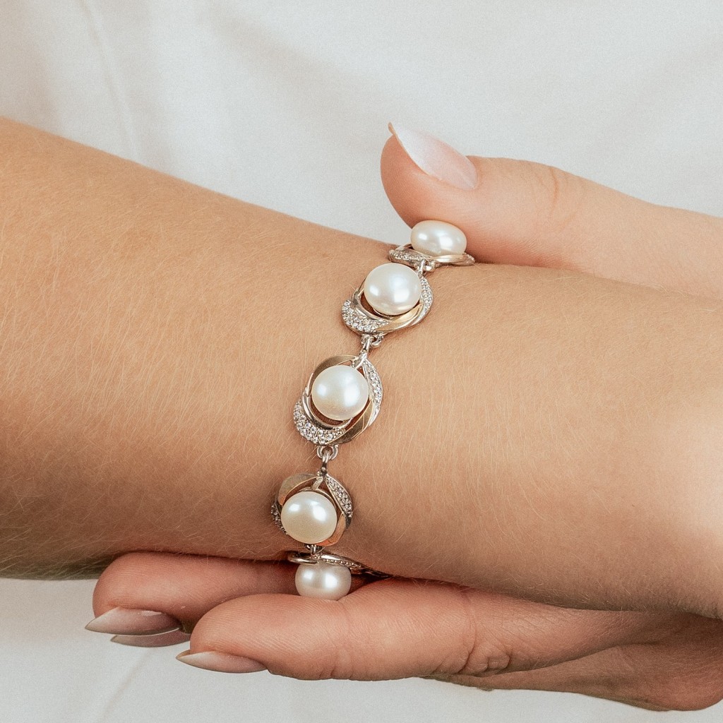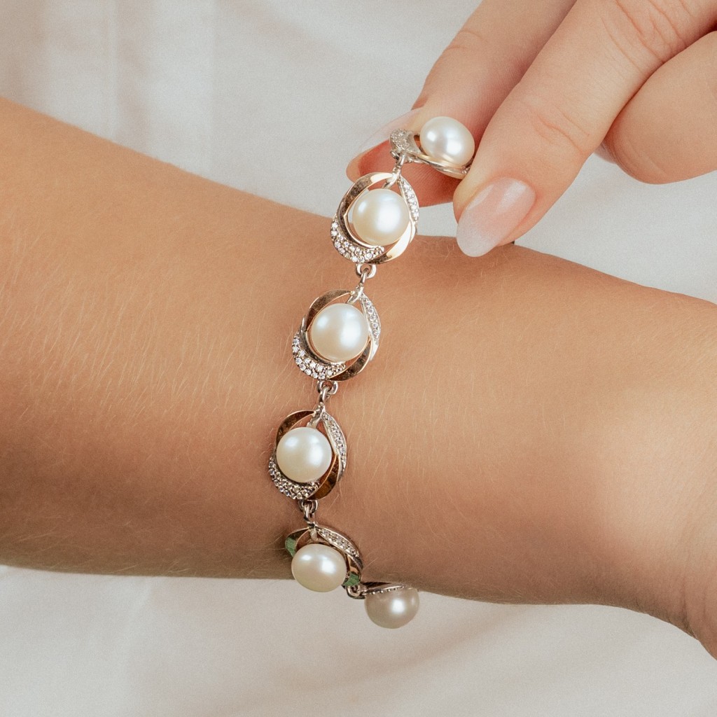 Sterling Silver bracelet with pearls gold plated