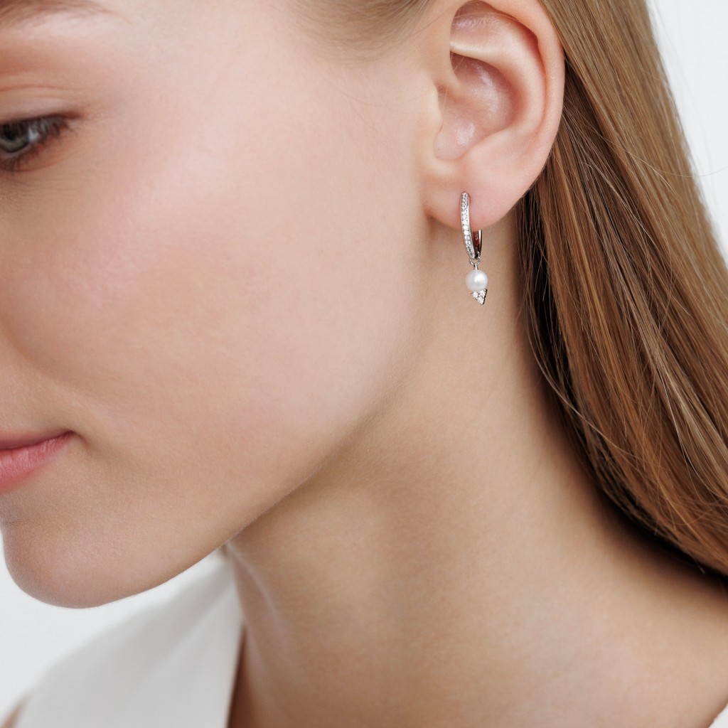 Sterling silver earrings with pearls and zircons