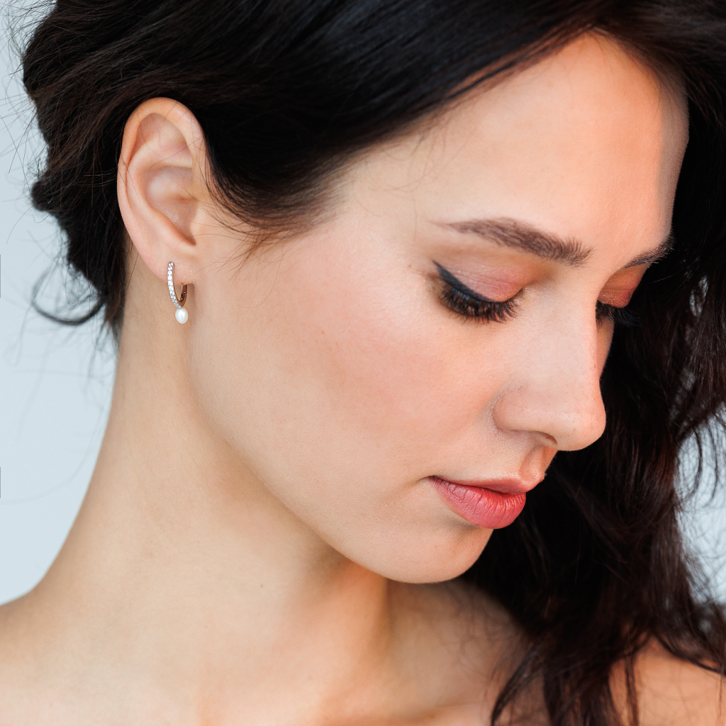 Серьги из серебра с жемчугом и цирконами