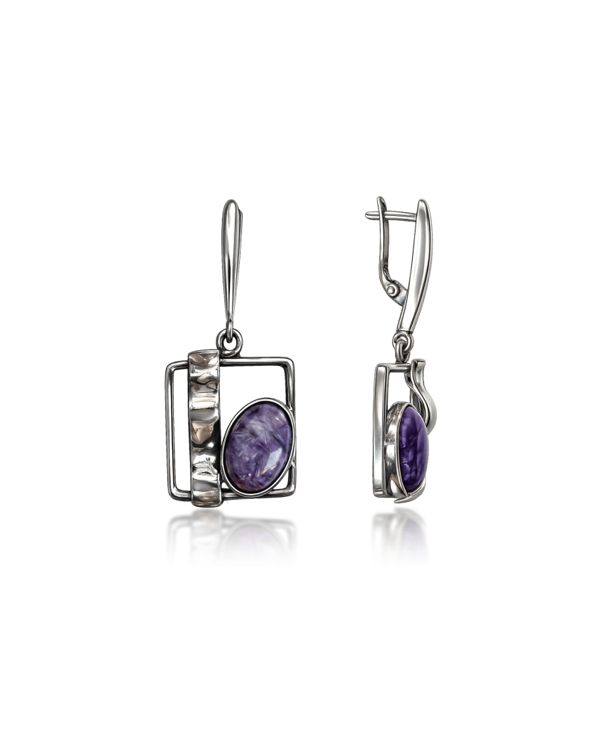 Silver earrings with charoites