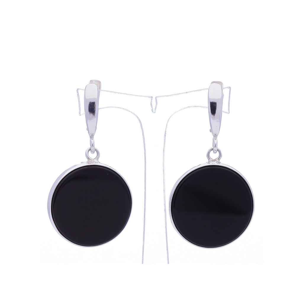 Sterling silver earrings with onyx 25mm