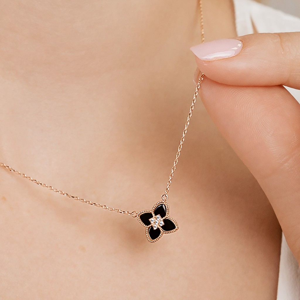 Gold chain with onyx pendant