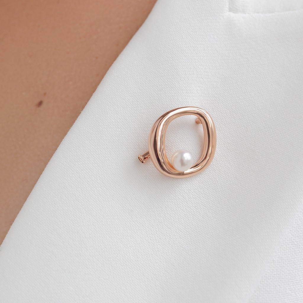 Gilded sterling silver brooch with pearl