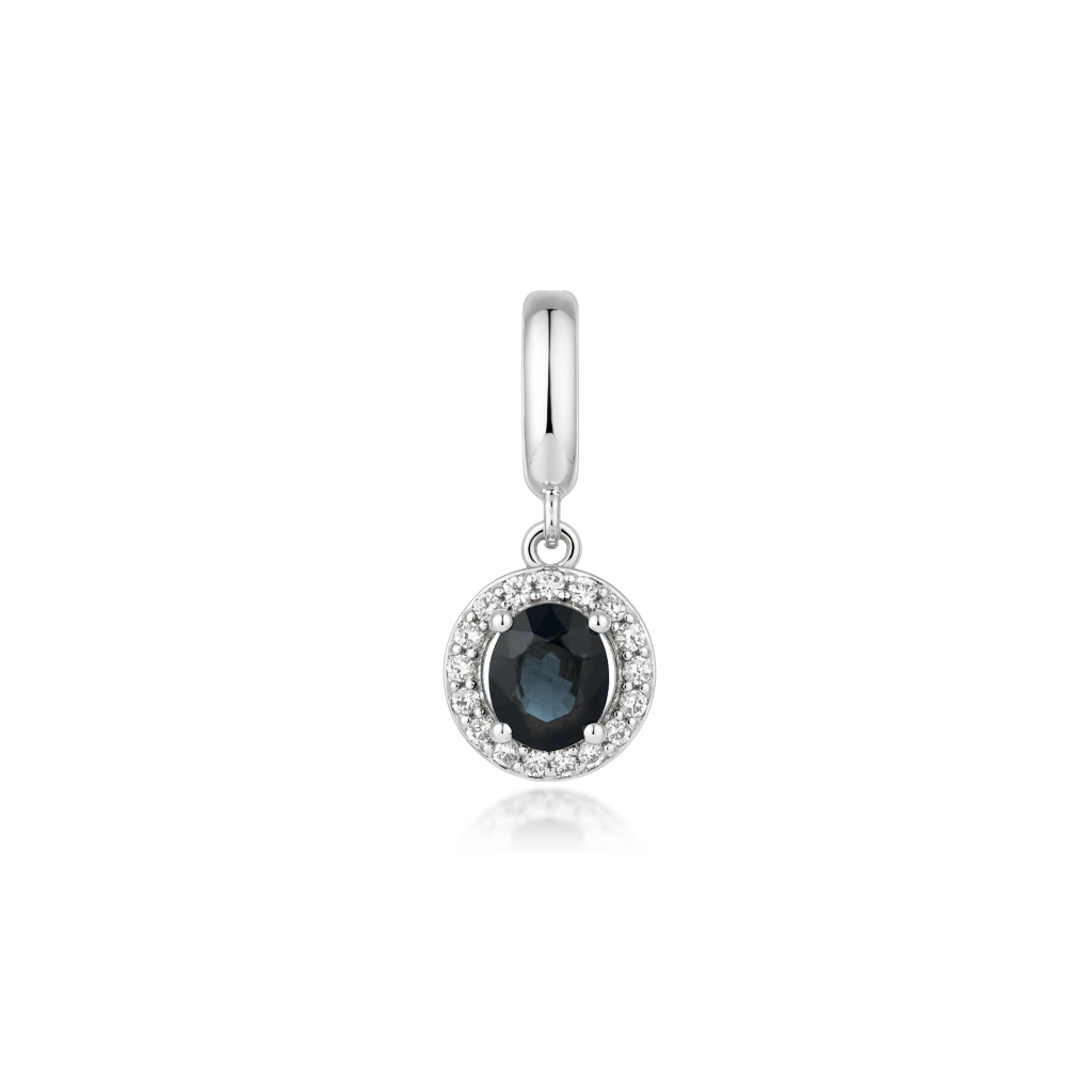 White gold pendant with sapphire and diamonds