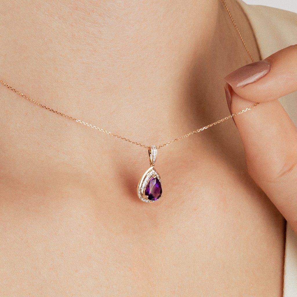 Yellow gold pendant with amethyst and diamonds