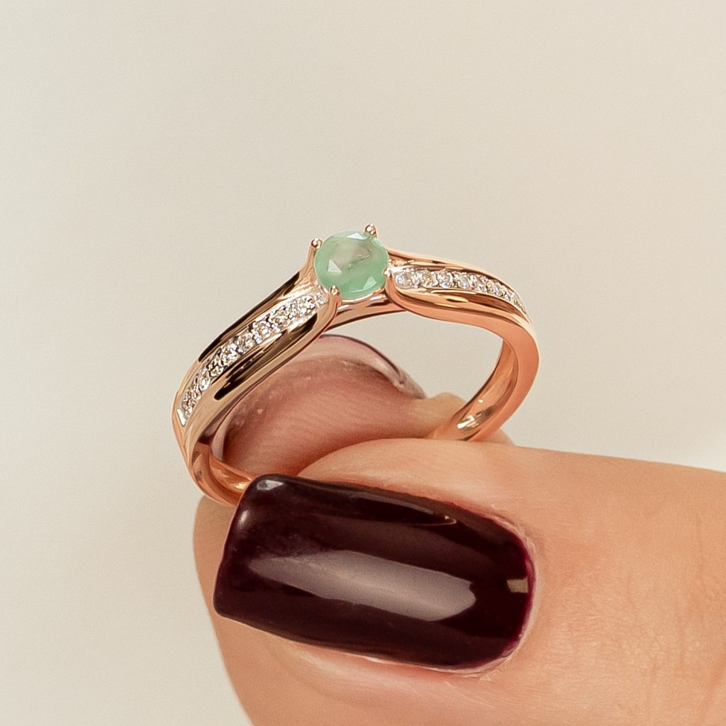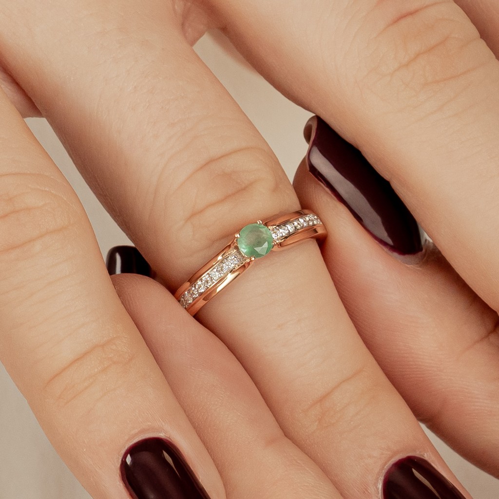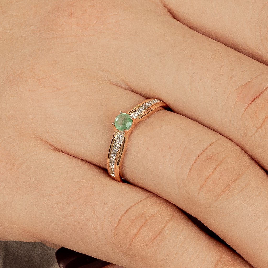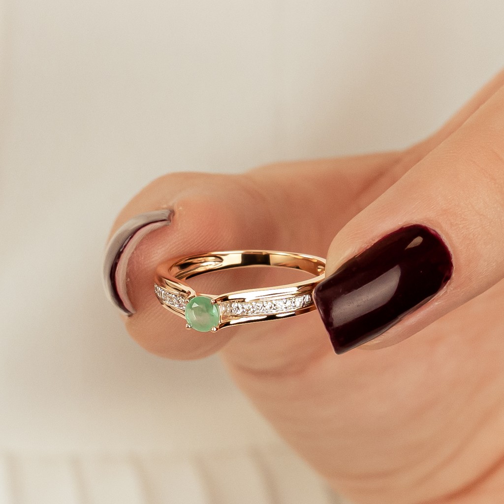Золотое кольцо с алмазами и изумрудом