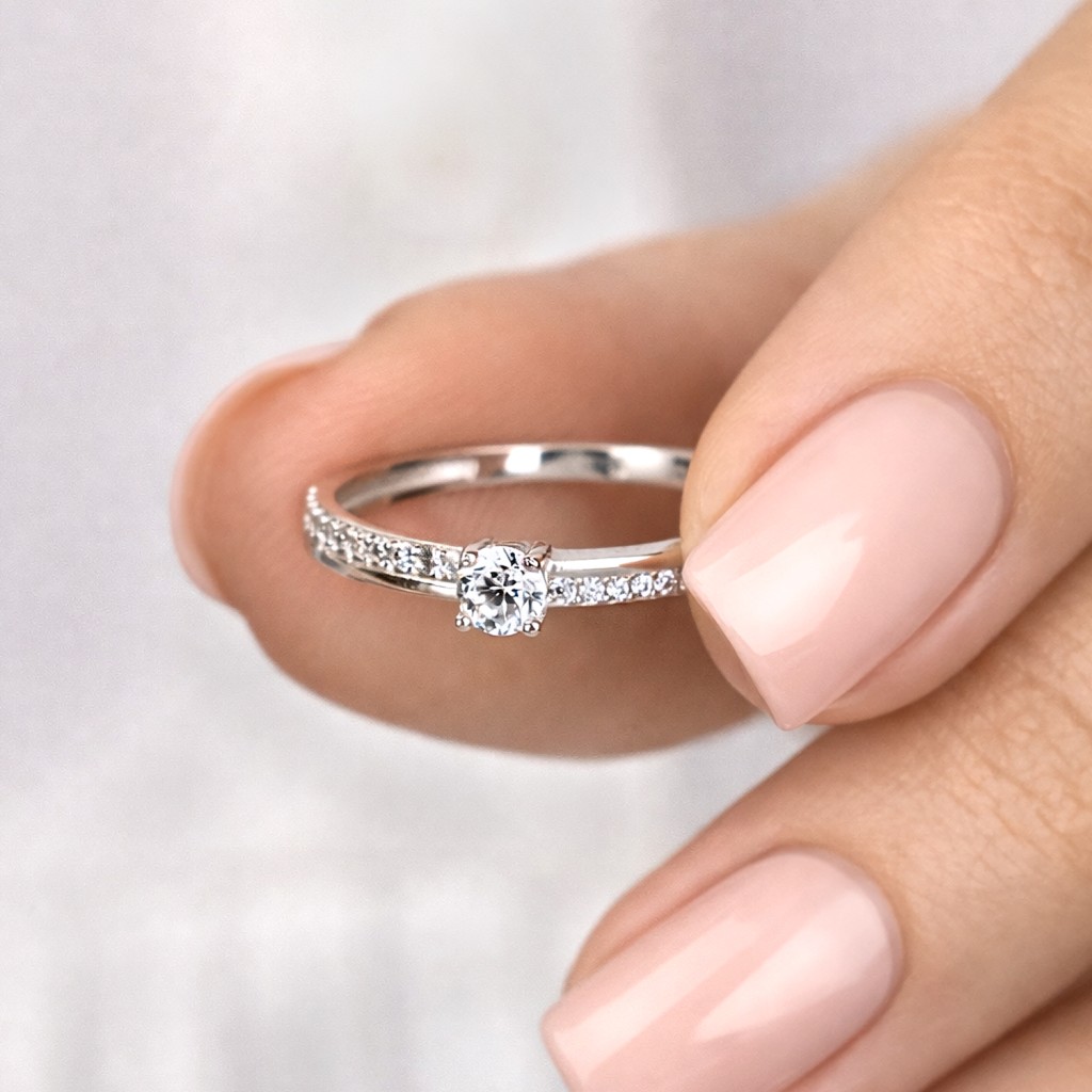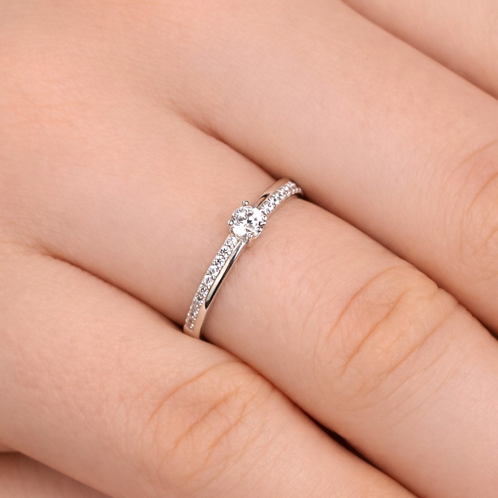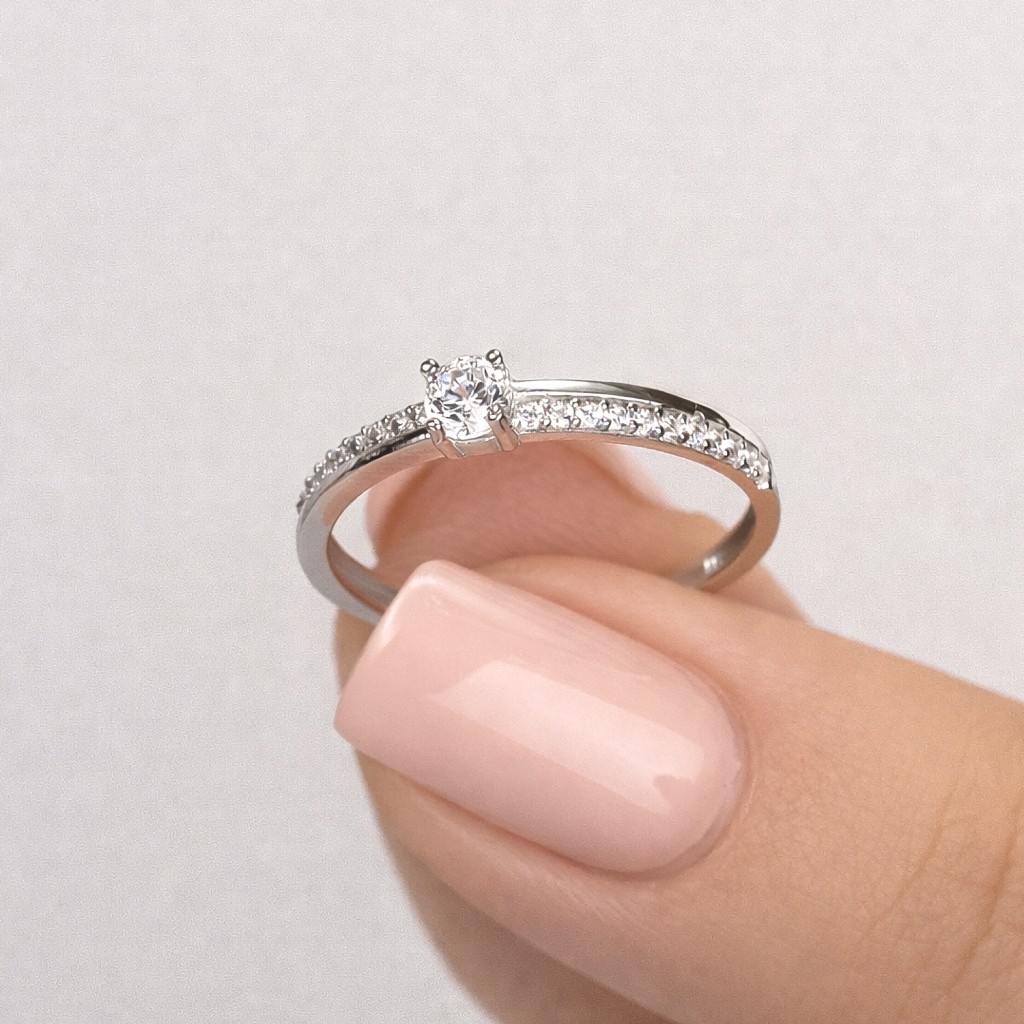 White gold ring with zircons