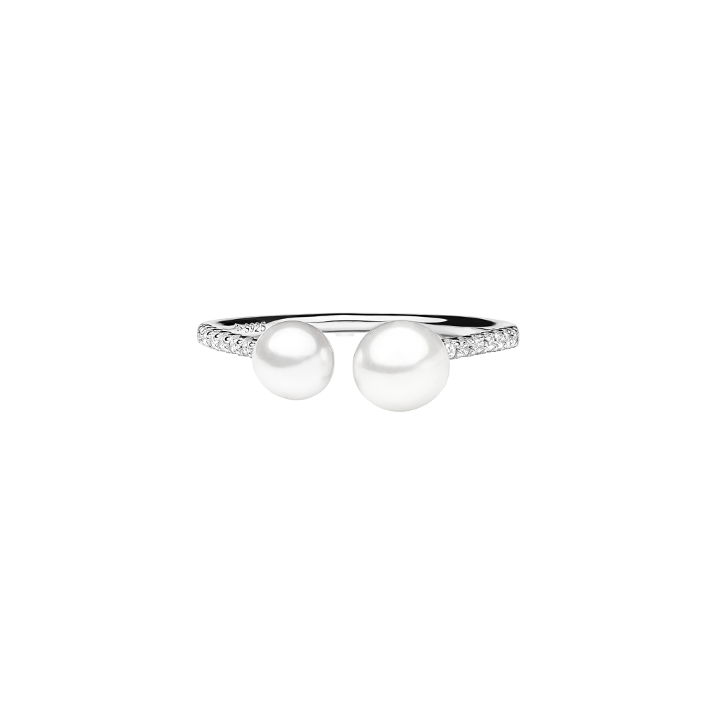 Sterling silver ring with pearl and zircons