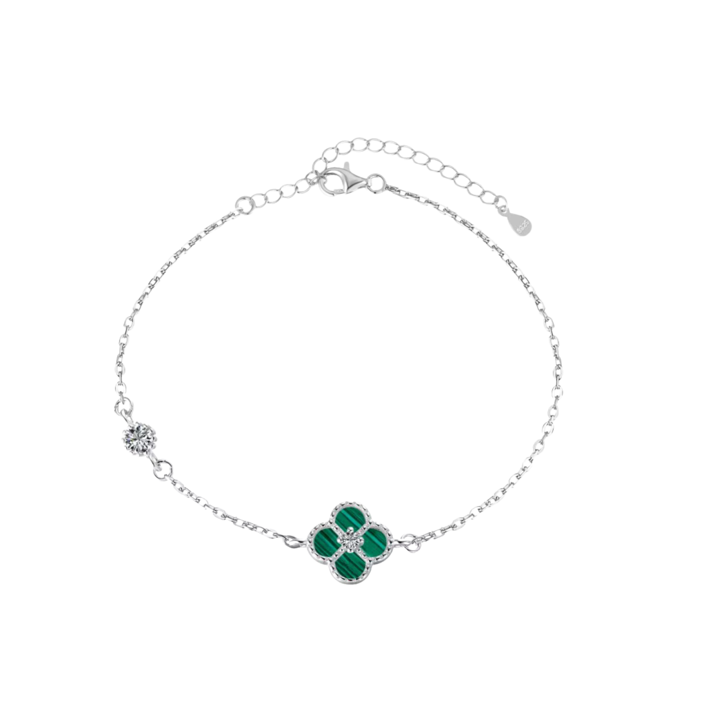 Серебряный браслет с цирконами и малахитом