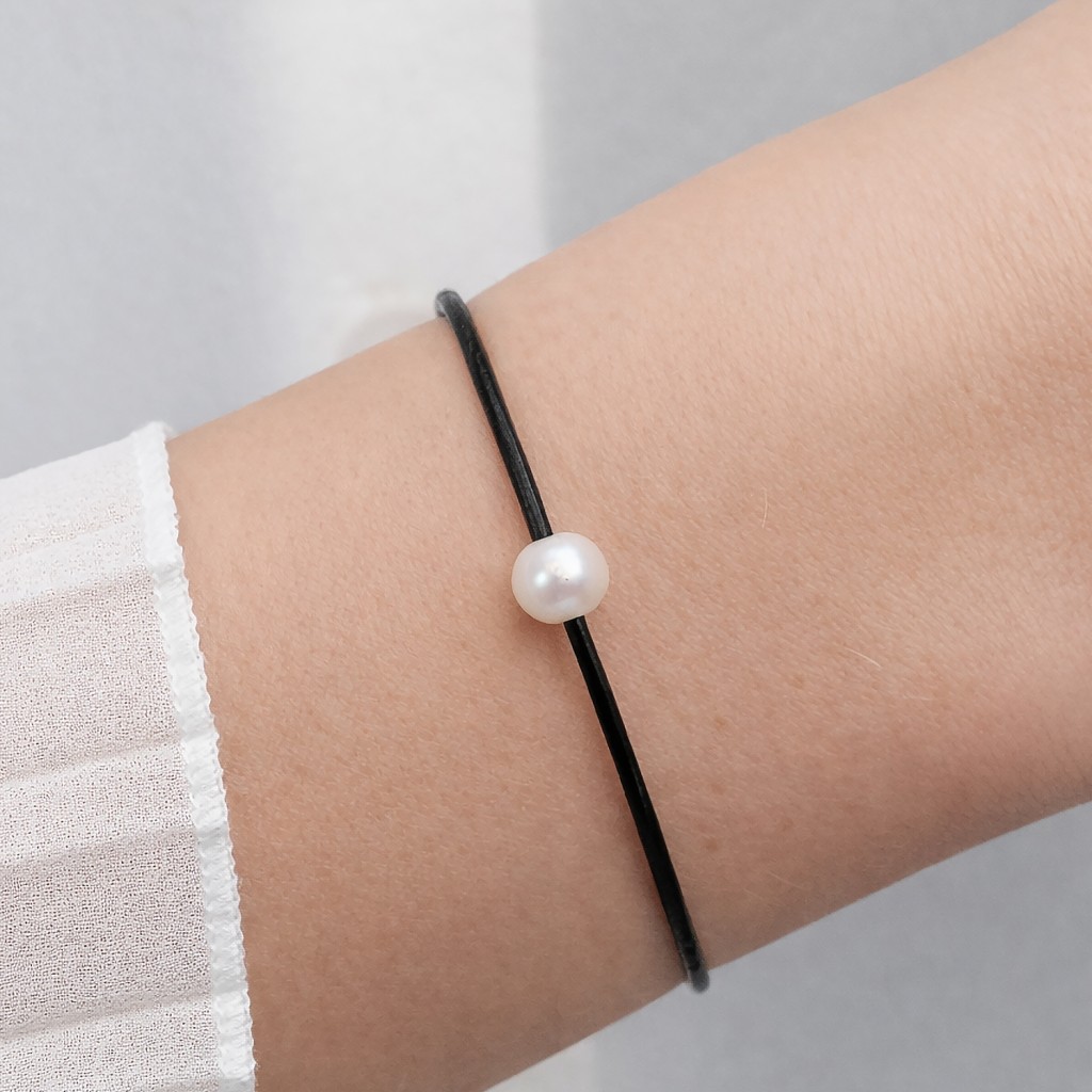 Кожаный браслет с жемчугом