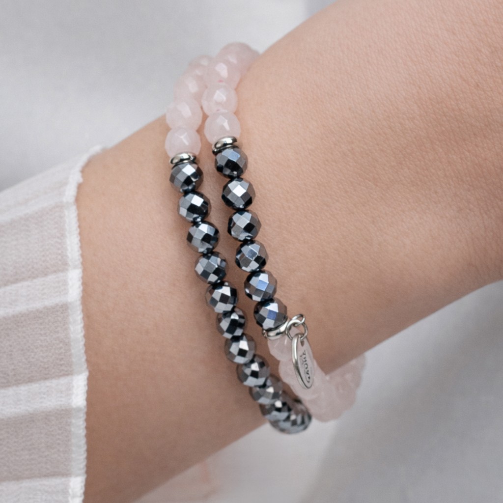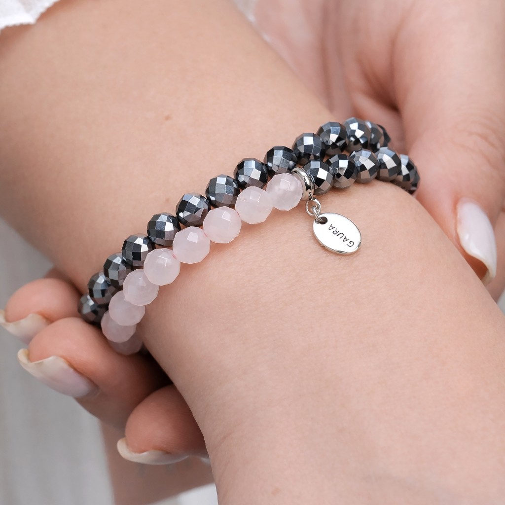 Браслет с терагерцем и розовым кварцем
