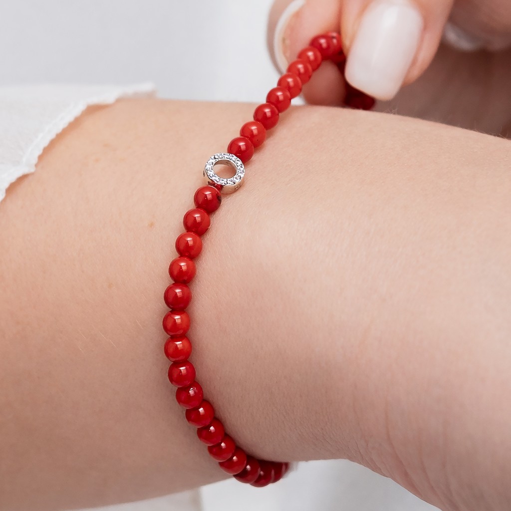 Браслет из кораллов с цирконами и серебром