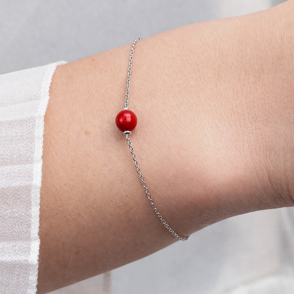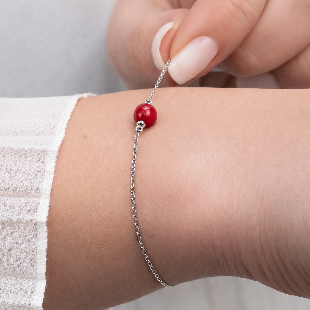 Серебряный браслет с кораллом