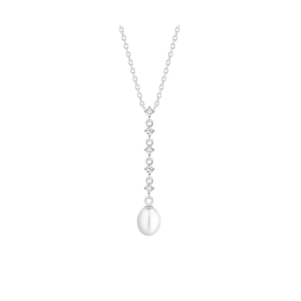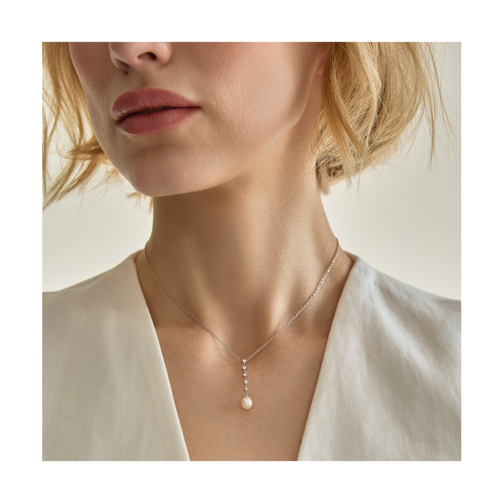 Серебряная цепочка с жемчужной подвеской и цирконами