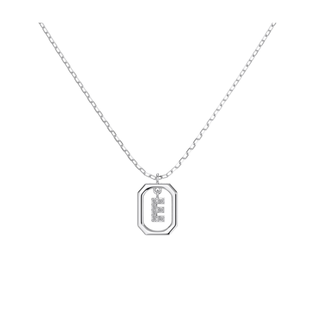 Серебряная цепочка с подвеской из циркона «Буква E»