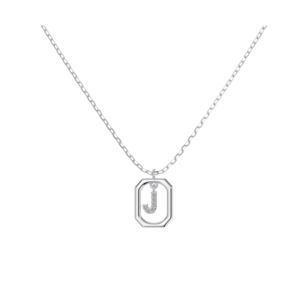 Серебряная цепочка с подвеской из циркона «Буква J»