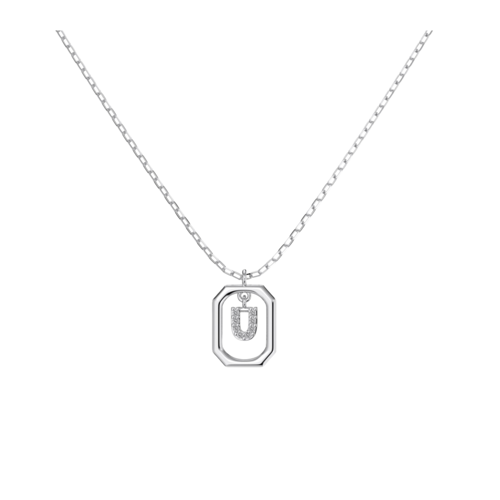 Серебряная цепочка с подвеской из циркона «Буква U»