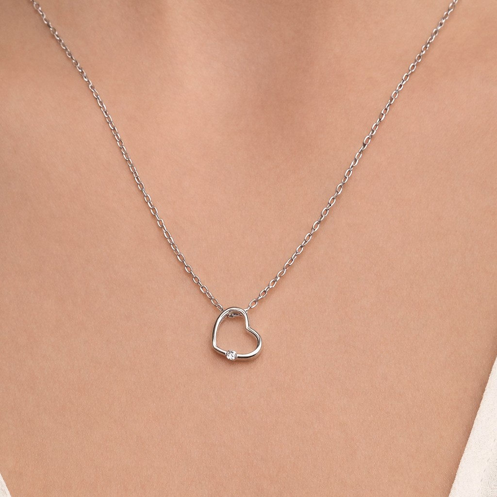 Серебряная цепочка с подвеской из циркона "Сердечко"