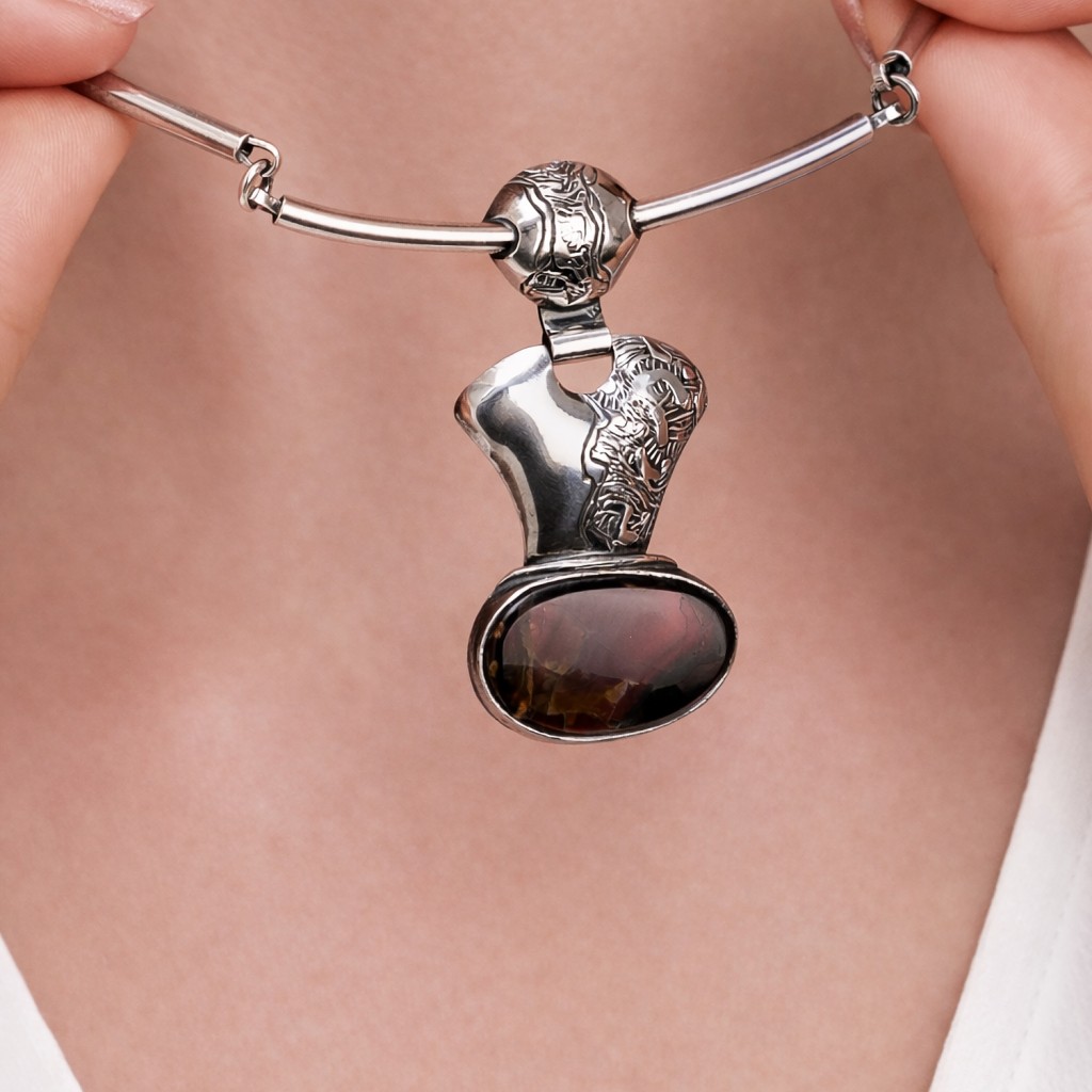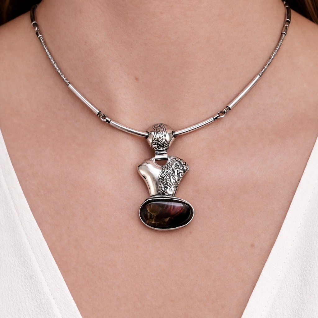 Серебряное колье с подвеской из лабрадорита