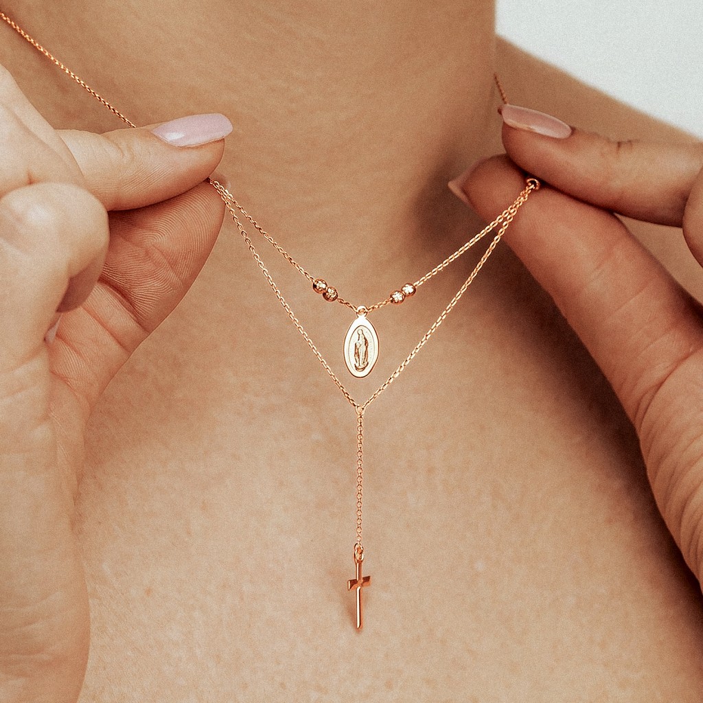 Двойная золотая цепочка с кулонами/подвесками