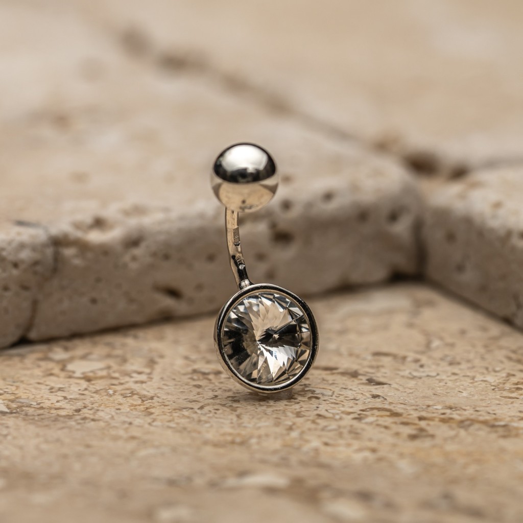 Серебряная серьга в пупок с кристаллом
