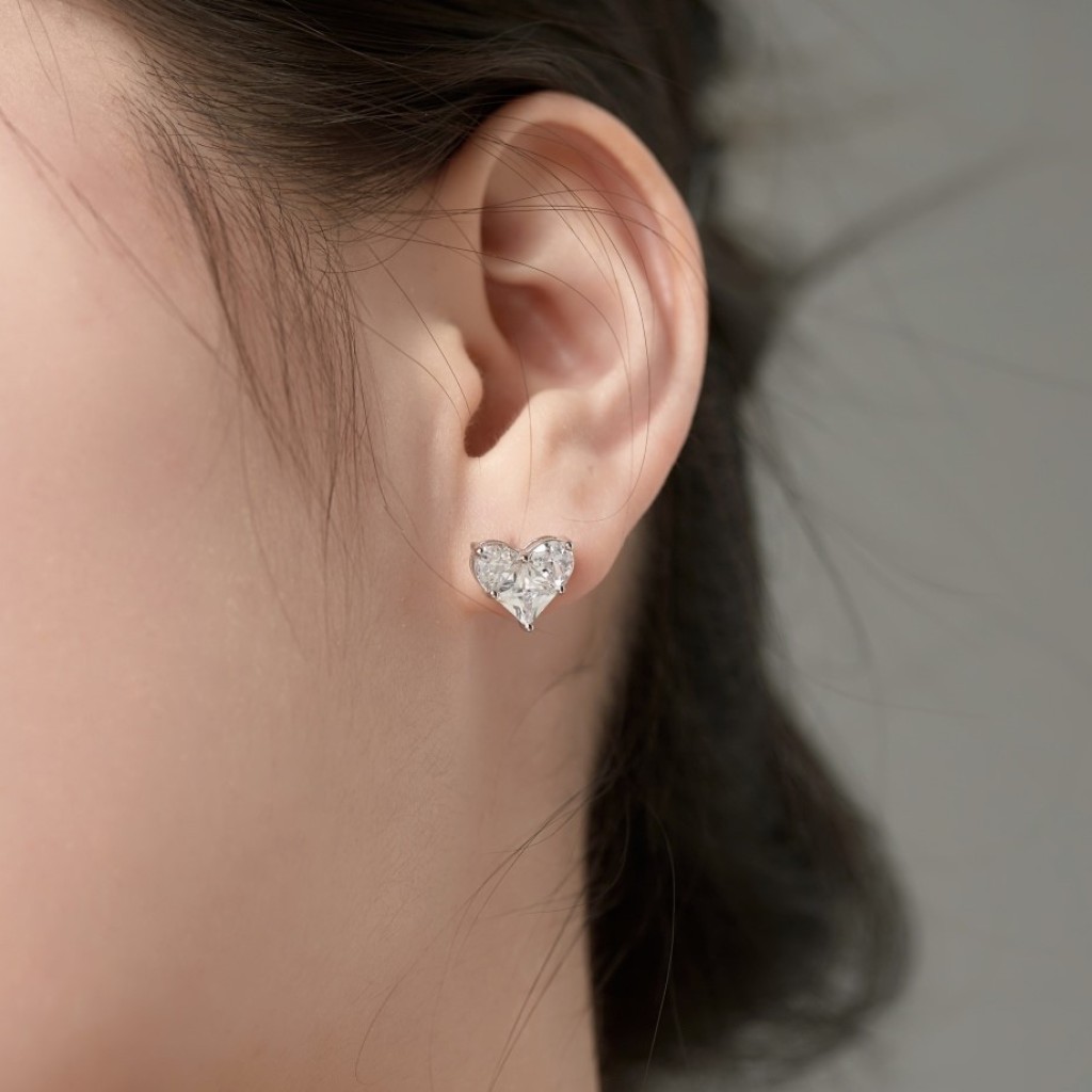 Серьги из серебра с цирконом "Сердце"