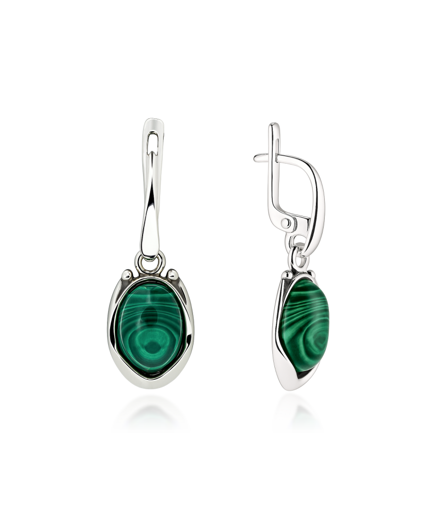 Серьги из серебра с малахитом