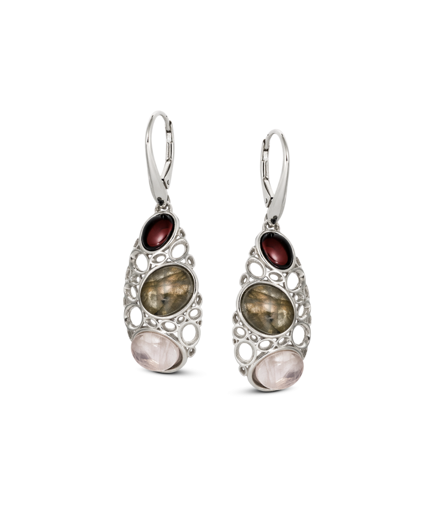 Серебряные серьги с янтарем и лабрадоритом