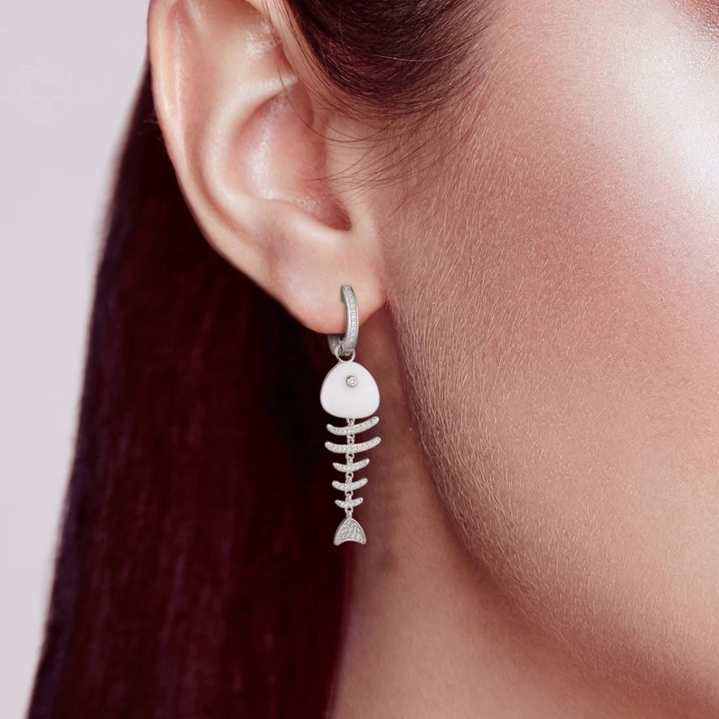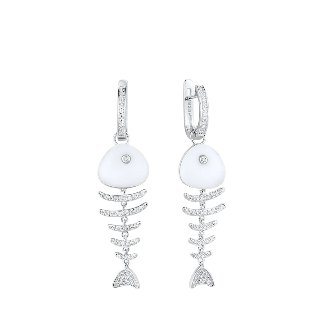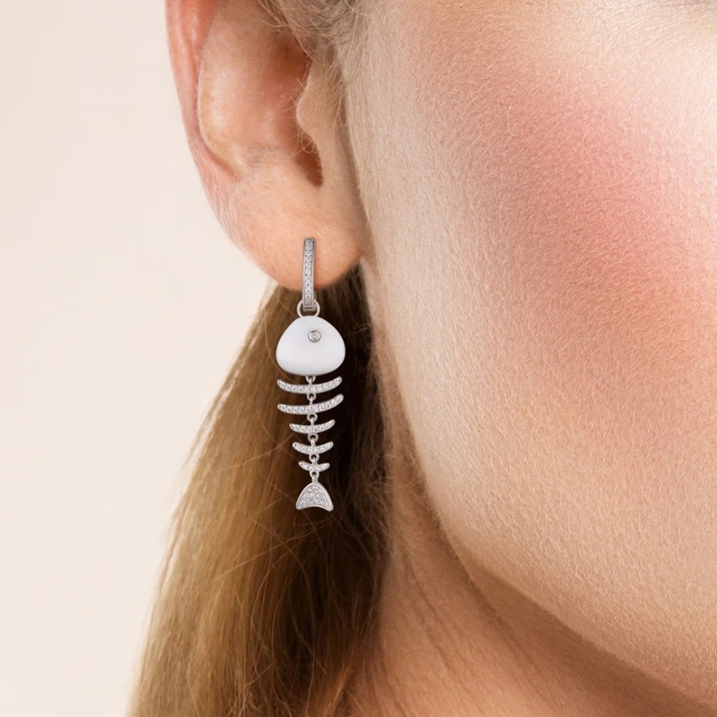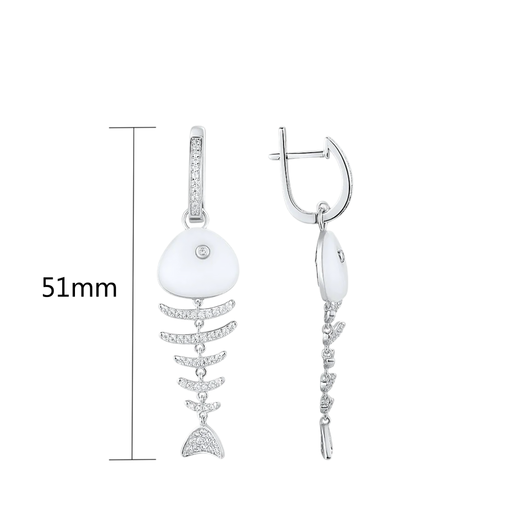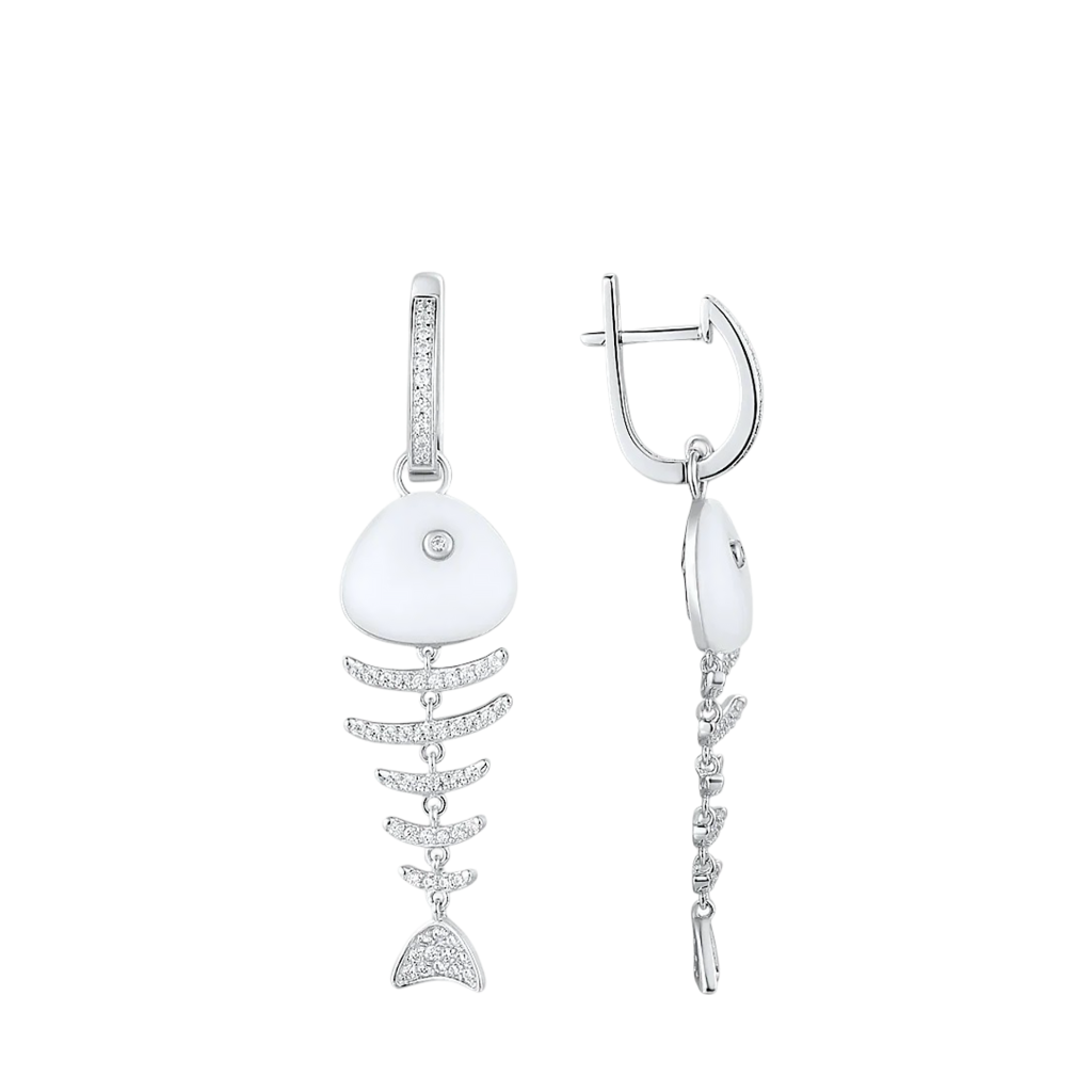 Серебряные серьги с цирконами и керамикой