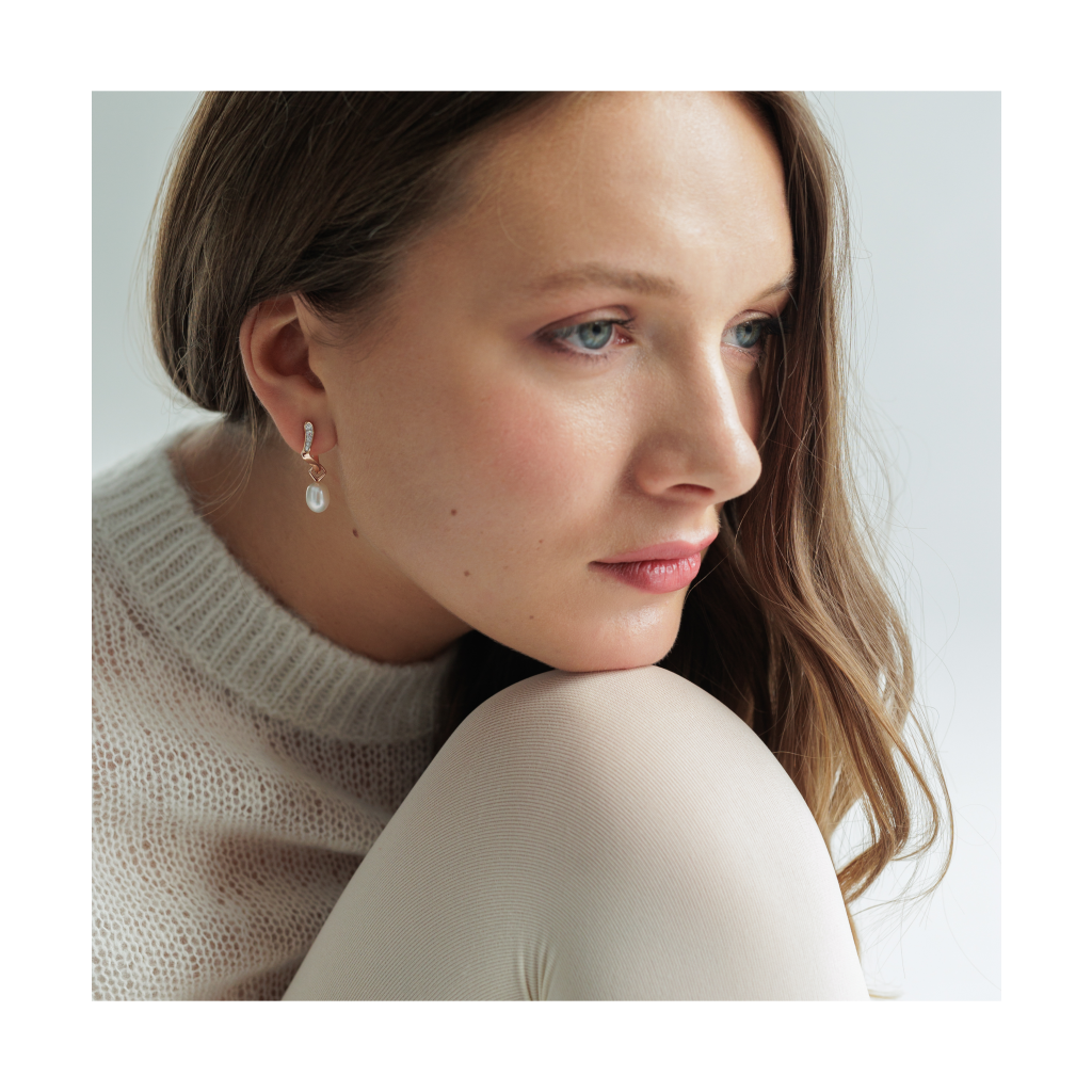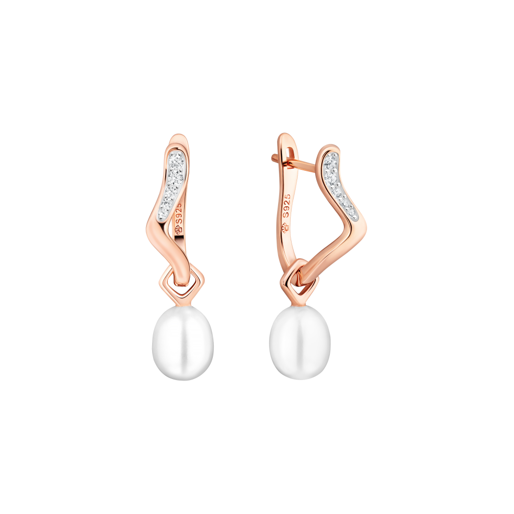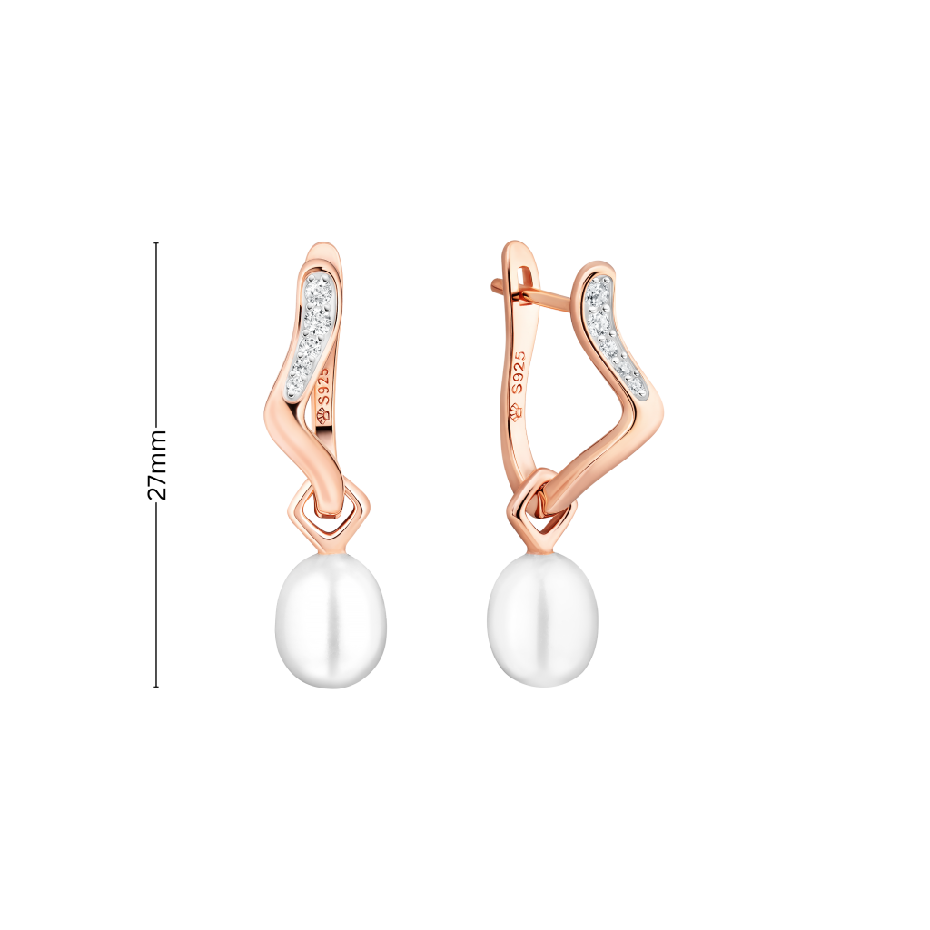 Серьги из позолоченного серебра с жемчугом и цирконами