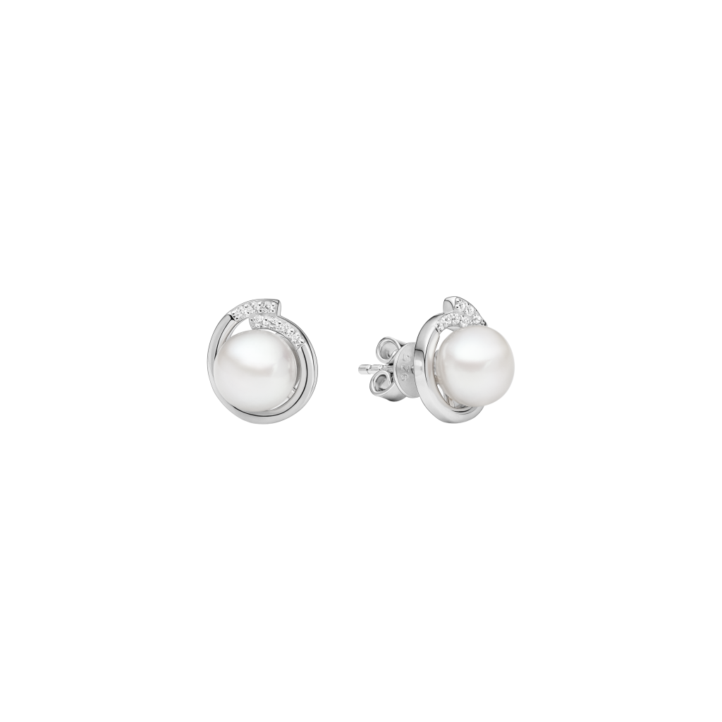 Серьги из серебра с жемчугом и цирконами