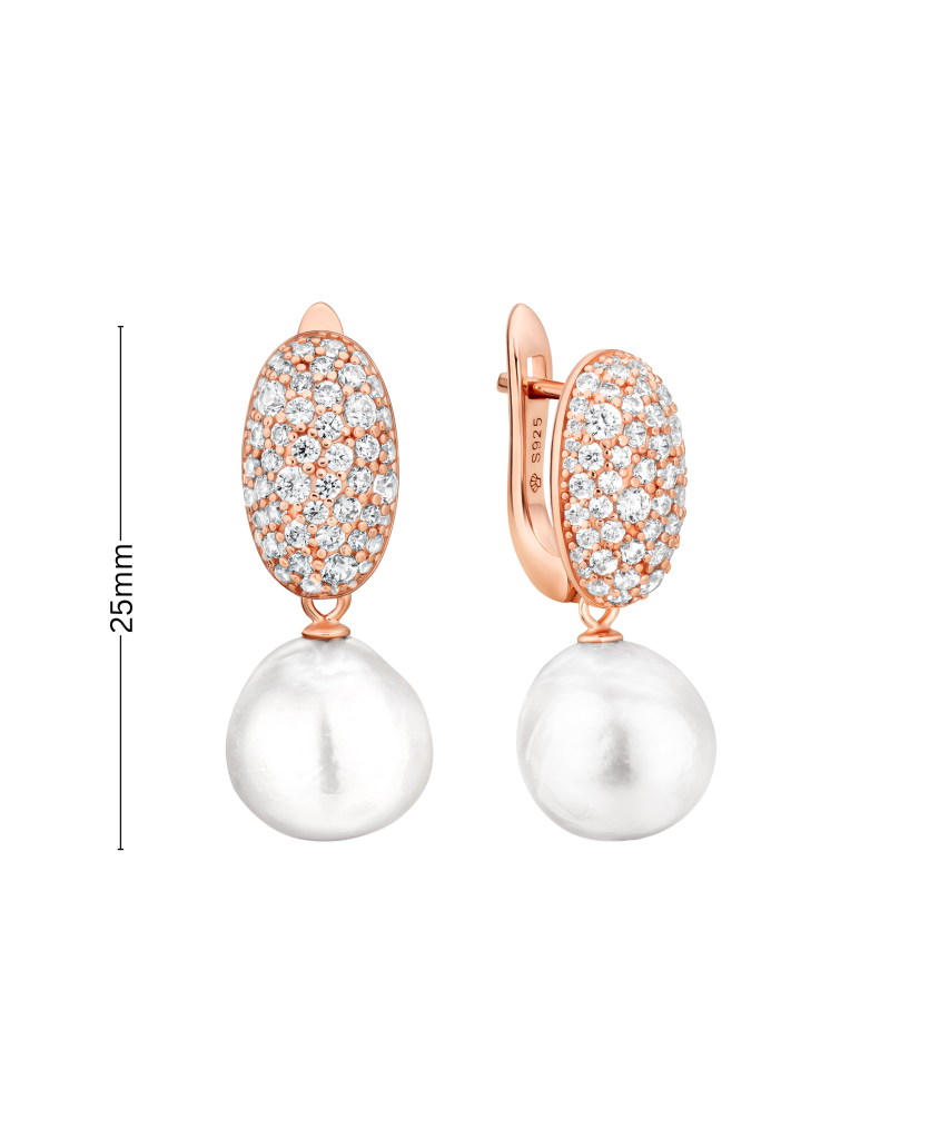Серьги из позолоченного серебра с жемчугом и цирконами