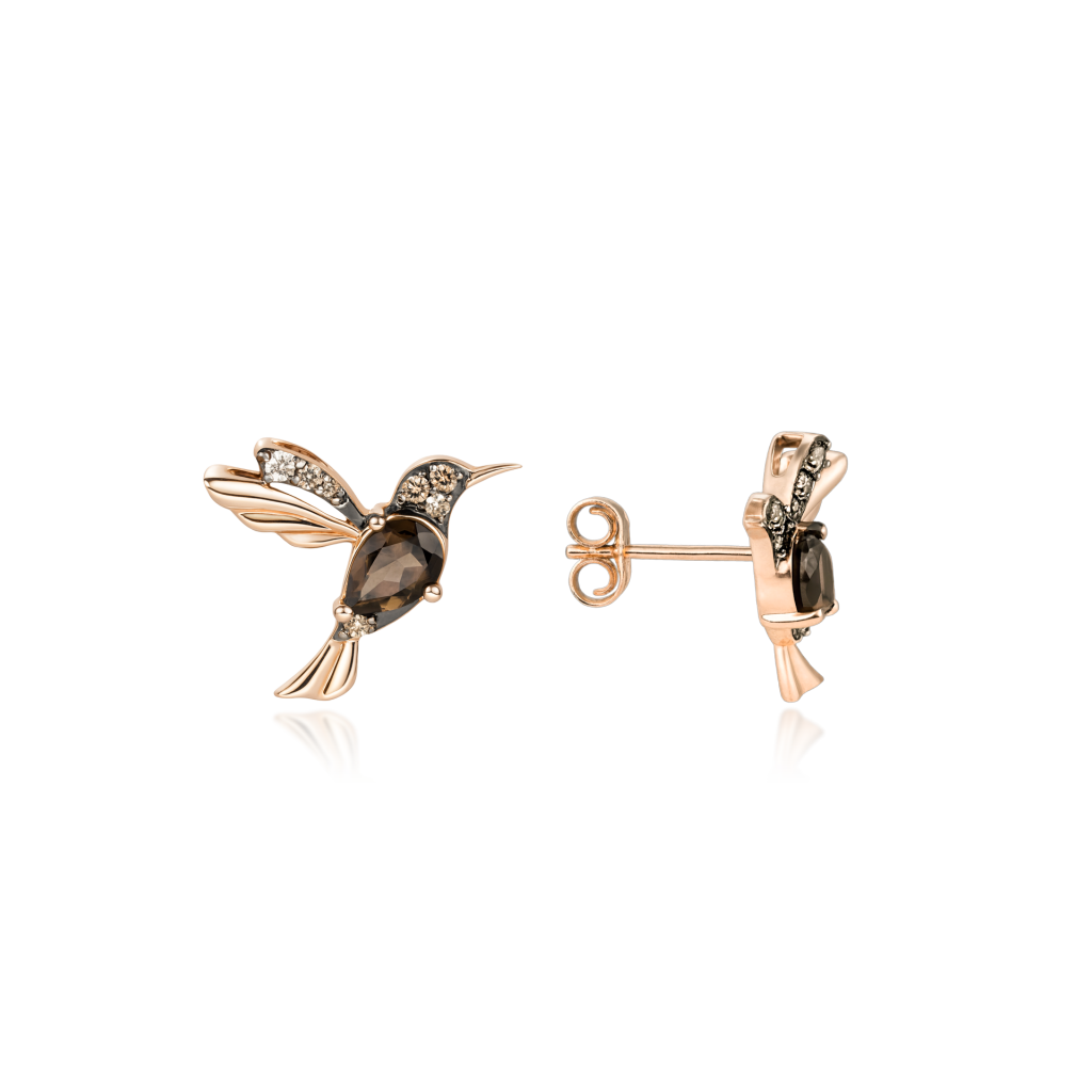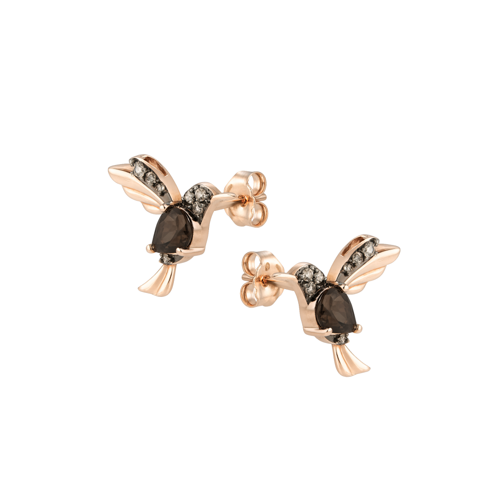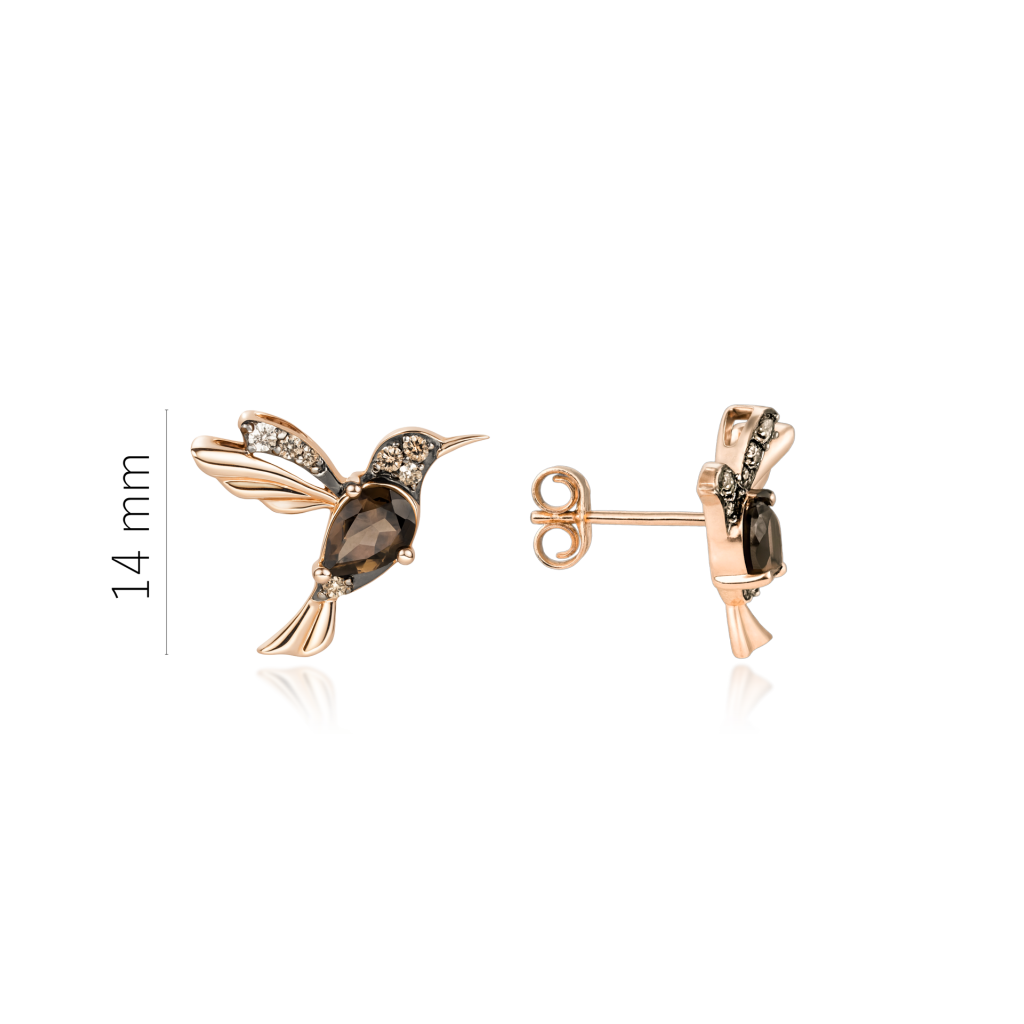 Золотые серьги с дымчатым кварцем и бриллиантами