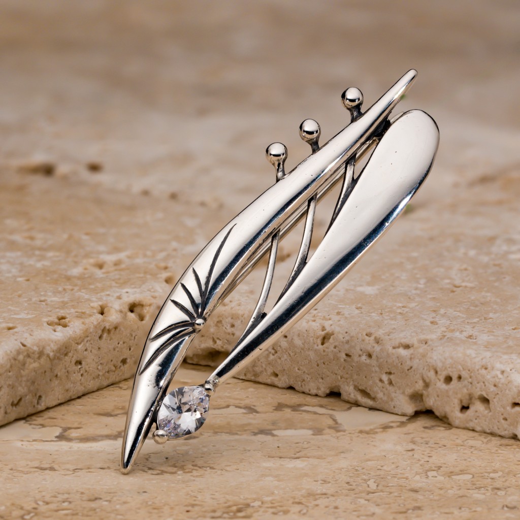 Серебряная брошь с цирконом