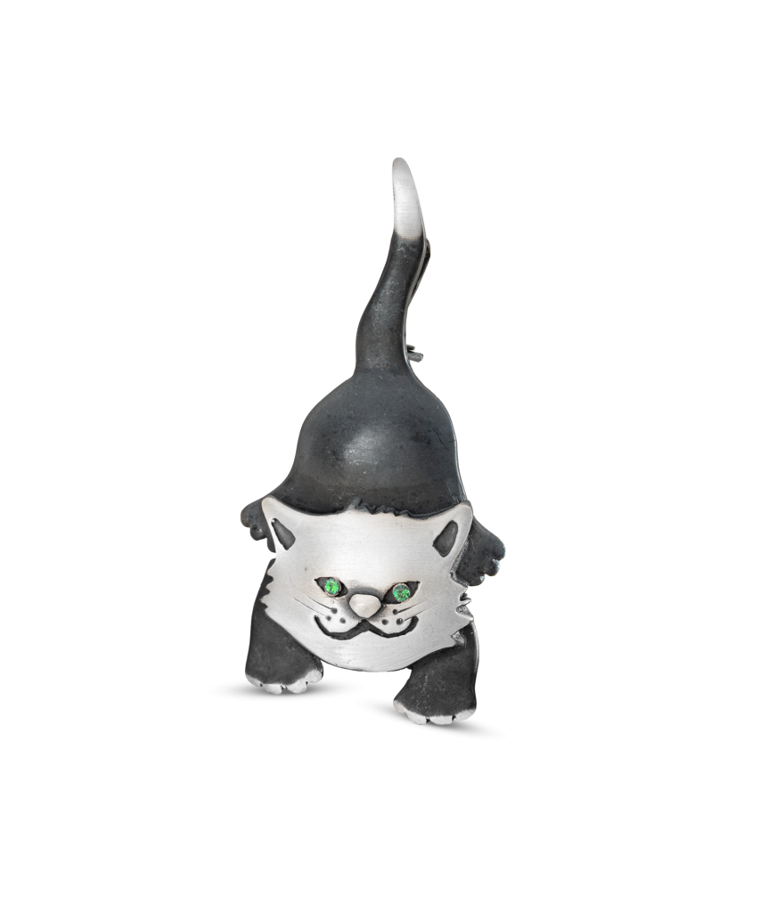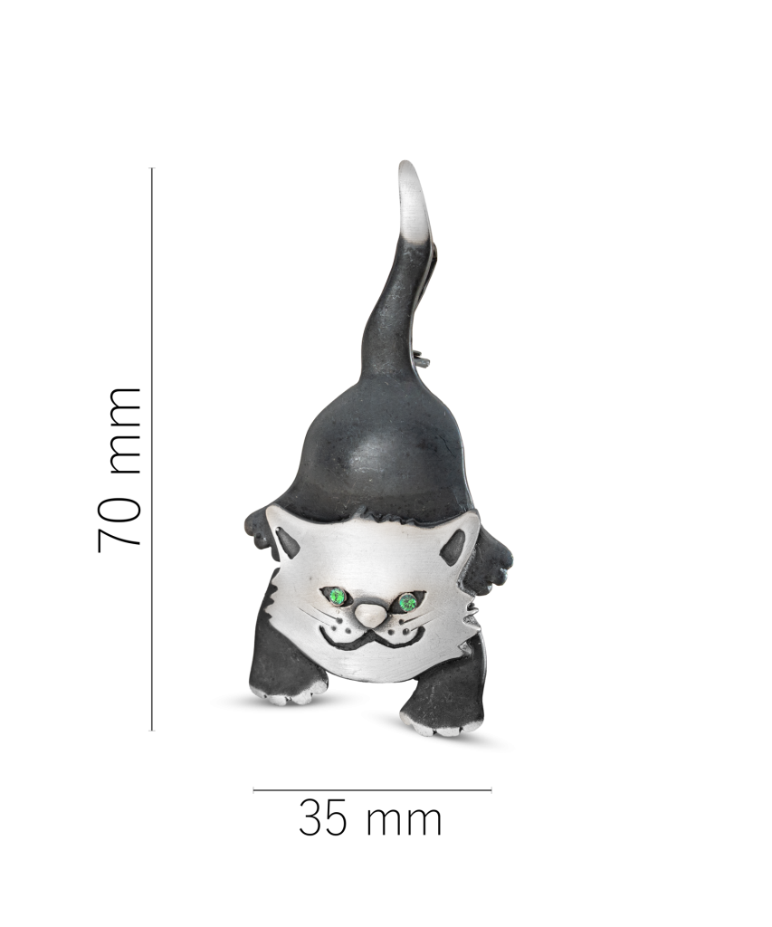Серебряная брошь с кристаллами "Кот"