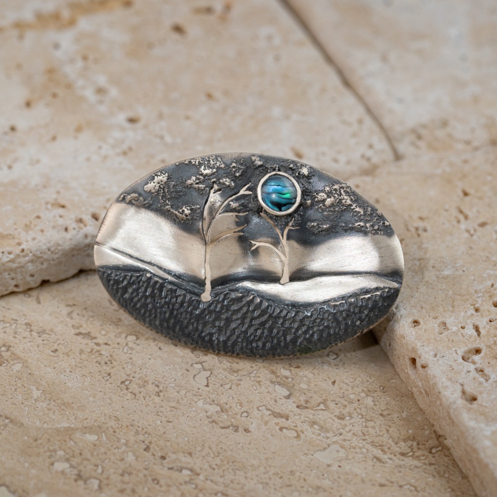 Серебряная брошь с перламутровой вставкой
