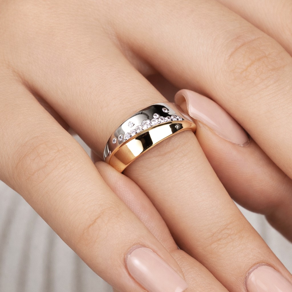 Кольцо из золочёного серебра с фианитами
