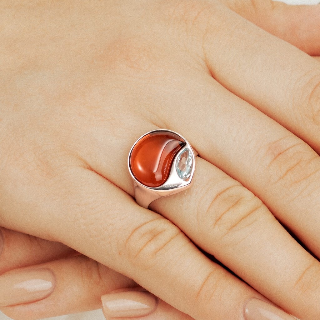 Серебряное кольцо с янтарем и топазом