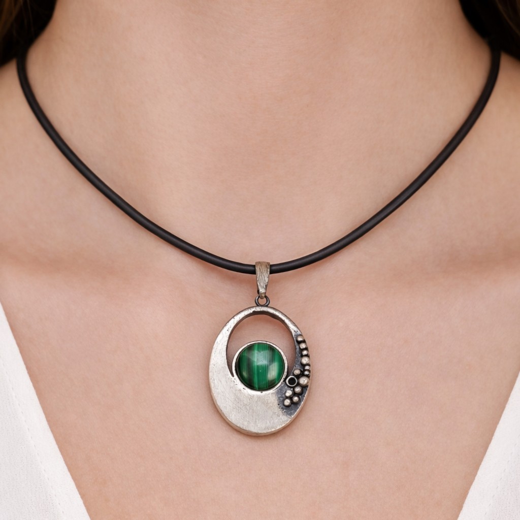 Серебряный подвеска с малахитом
