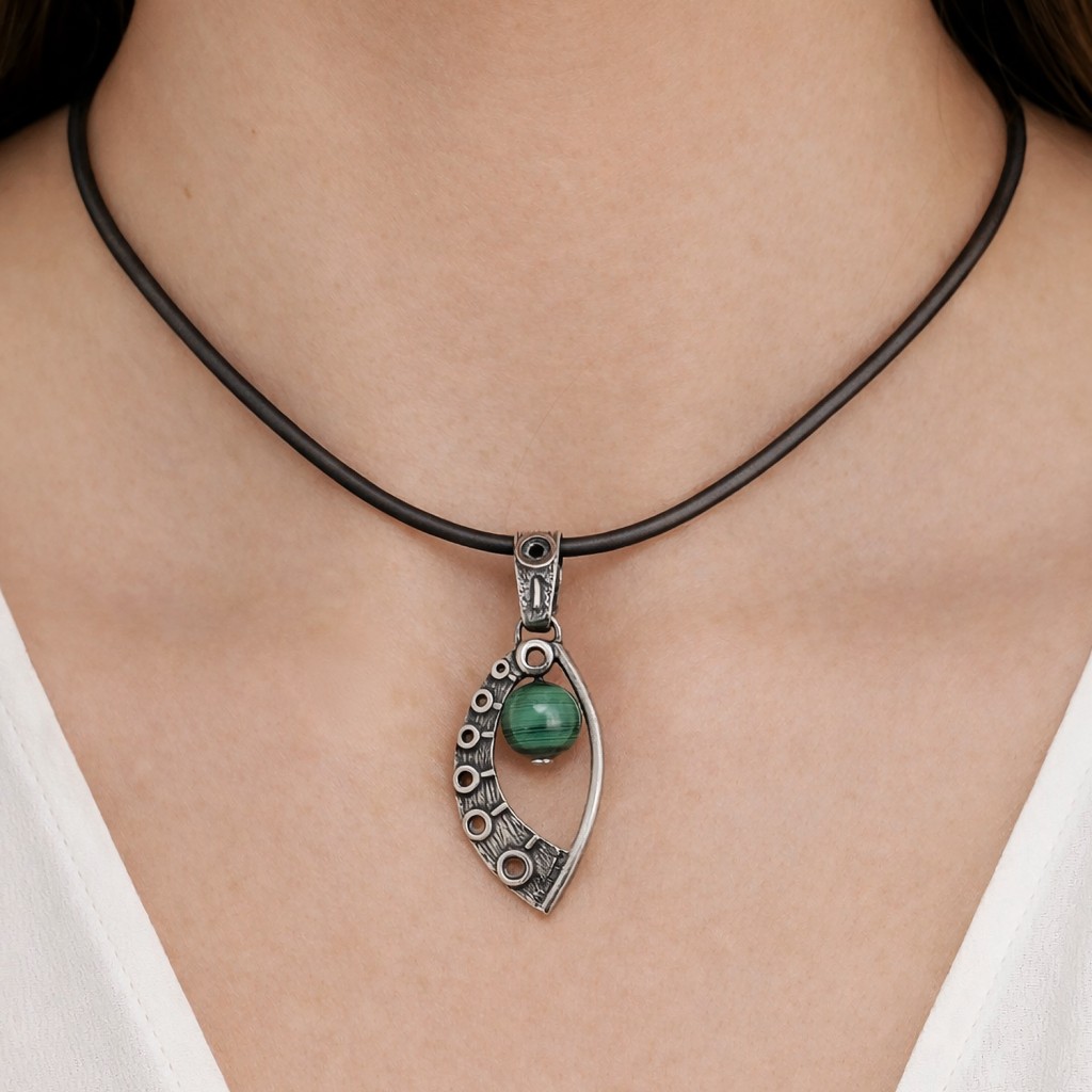 Серебряный подвеска с малахитом
