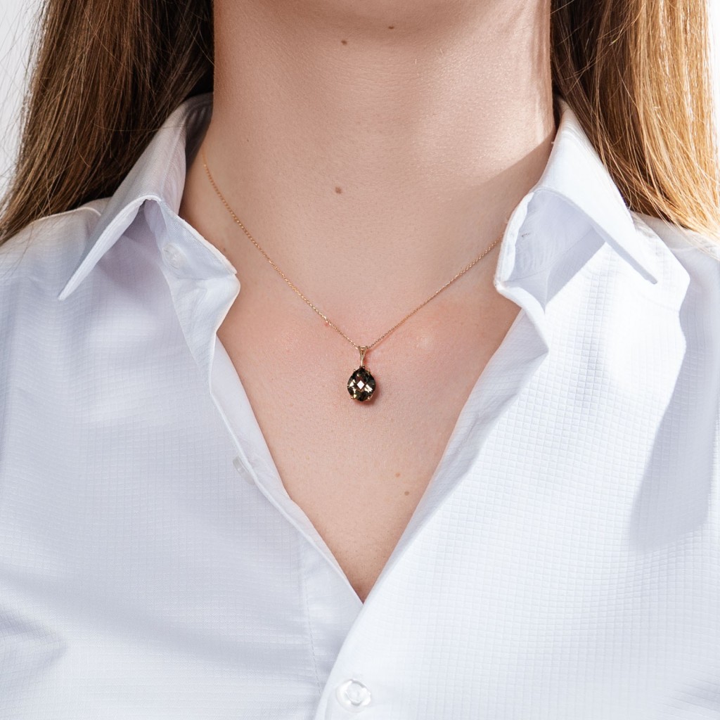 Золотой кулон/подвеска с дымчатым кварцем